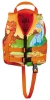 Fun, bright and colorful graphics. Unique shaped foam back. 150 denier poly-twill. Zippered front with waist belts and leg strap to keep vest from riding up or shifting. Lightweight, durable flotation foam. Fits 30-50 lb children.Type III.