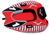 The bottoms are shaped like boat hulls which is the key to the unparalleled lively and stable ride. Especially popular with young children, as they feel very safe sitting on the comfortable inflated floors inside the cockpits. Kids and adults will enjoy the stunning Nascar-inspired graphics. The durable 30 gauge bladders are completely encased in durable double-stitched nylon, there is no exposed PVC. The striped nylon wrap handles have neoprene knuckle guards for comfort. An EVA "Indy Cap" covers the Boston valve. 67" x 51".