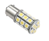 Wide voltage range 8-30 Volt DC. Applications include 12 or 24 VDC auto, marine, RV, and military vehicles. 27 high power 5050 SMD LEDs. Beam pattern 360 degrees. Luminous flux 250 lumens. 3.24 Watts. Color temp 3000-3500K warm white. Replaces automotive bulb numbers BA15S T25 T-25 20-99 1073 1093 1129 1141 1147 1156 1159 1259 1295 1383 1459 1619 1651 1680 2056 3496 5007 5008 7008 7506 7806 7527 1759 3497.
