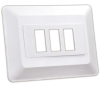 Triple switch base & bezel. Allows more space for thin walls. White. Outside Dim: 4.875" x 3.75", Switch Cutout: 1.125" x .550"