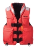 Strength tested at 100 MPH not tested for personal protection from impact. Flexible foam and durable 200 denier nylon construction. Flotation foam filled collar for added support and comfort. Multiple cargo pockets. Two D-rings for small attachments. Three 1.5" buckles, two 1.5" encircling belts, chest strap and heavy-duty zipper closure. 62 sq. inches of retroreflective material. Minimum 15.5 pounds of buoyancy. Marine safety whistle attached.